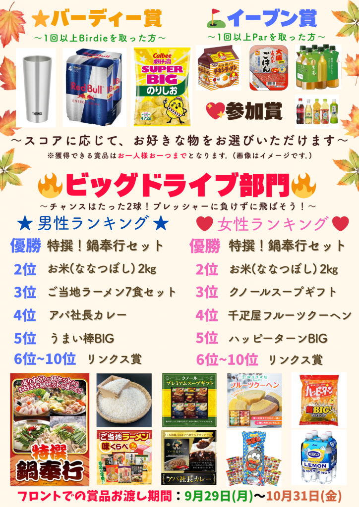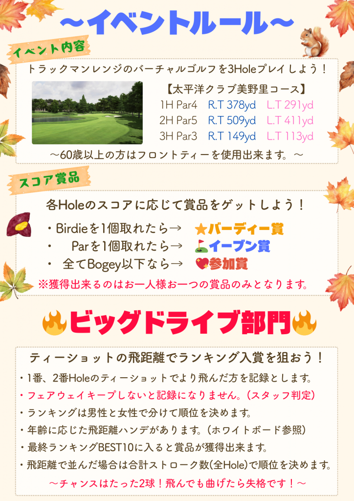 更に!!1Hと2Hのティーショットの距離でランキングを決めるビッグドライブ部門がございます🔥