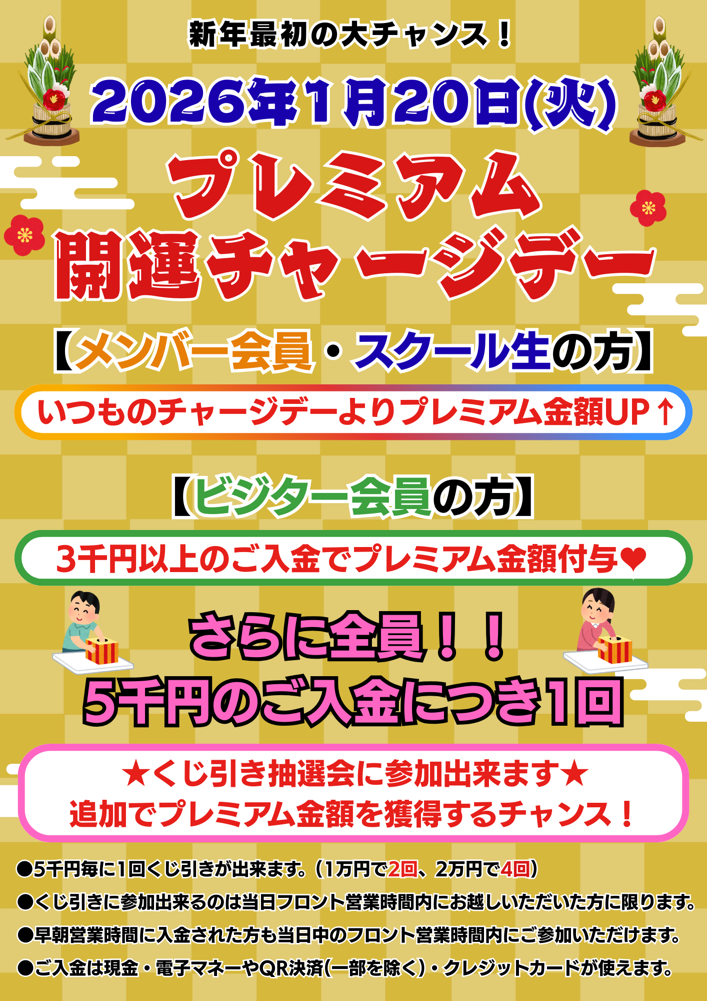 プレミアム開運チャージデー開催のお知らせ✨ 2026年1月20日(火)